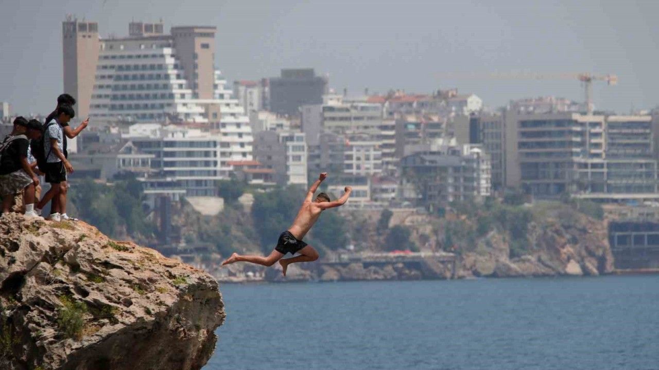 Antalya’nın dünyaca ünlü Konyaaltı Sahili’nde havaların ısınması ile birlikte özellikle hafta sonları yoğunluk yaşanıyor. Konyaaltı Sahili’nden yaklaşık 30 metrelik falezler manzarasıyla görenleri büyülerken adrenalin tutkunu gençlerin tehlikeli eğlencesine de sahne oluyor. Yaklaşık 30 metre yüksekliğindeki falezlerden denize atlayan gençler görenleri hem hayrete düşürüyor hem de yüreklerini ağzına getiriyor. Geçmiş yıllarda yaşanan ve ölüme varan ciddi sonuçlara neden olan olaylardan ders çıkarmayan bazı gençler şov ve adrenalin uğruna bu atlayışlarını sürdürüyor.