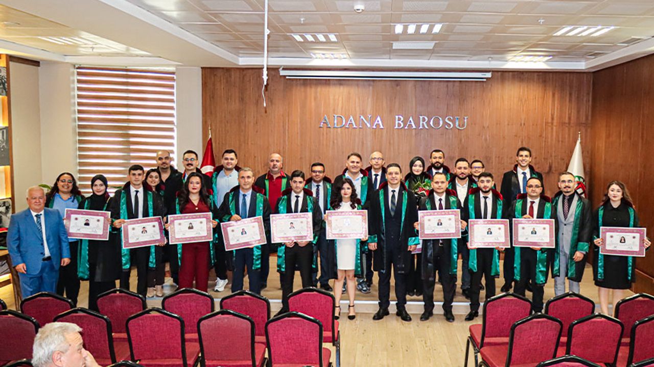 Törene; Adana Barosu Başkanı Av. Volkan Böke, yönetim kurulu üyeleri, yeni ruhsat alan avukatlar, aileleri ve davetliler katıldı.