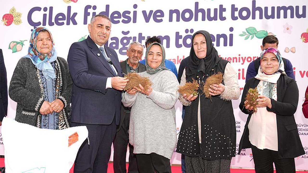 ton nohut tohumunu Tufanbeyli çiftçisine dağıttı. 70 bin çilek fidesi ve 20 ton