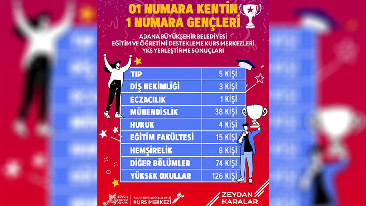 Adanalı gençler, kurs merkezlerinde aldıkları eğitim sayesinde tıp, mühendislik, hukuk, eğitim fakültesi gibi önemli alanların yanı sıra hemşirelik ve yüksekokullara da yerleşmeyi başardı.