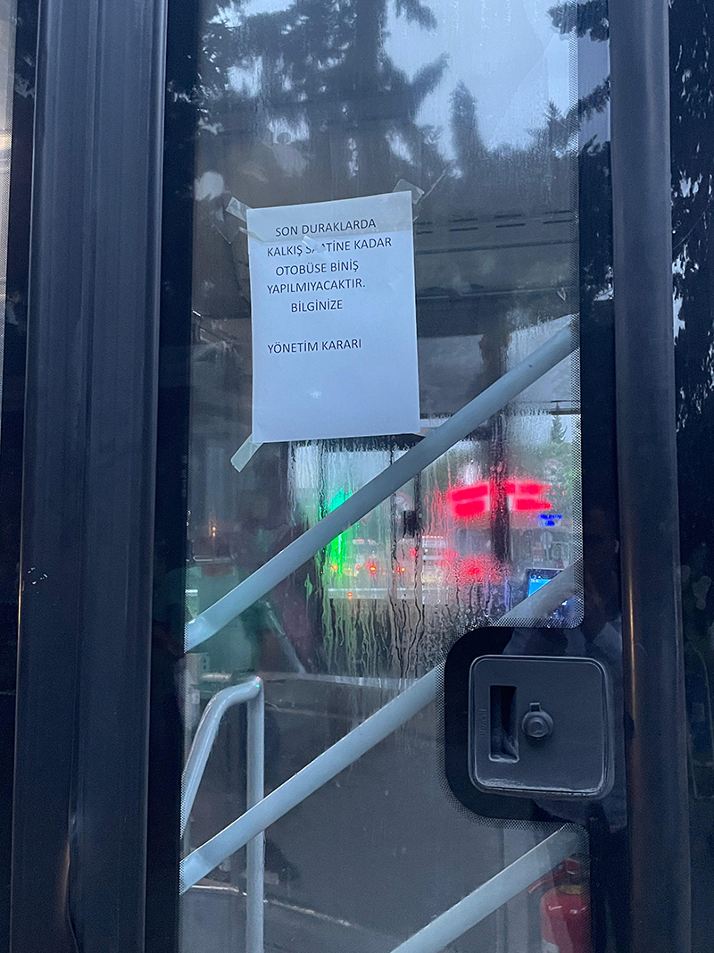 Duyuru otobüslerin kapı ve camlarına asıldı. Bir A4 kağıdına yazılmış duyuruda şu ifadeler yer aldı: