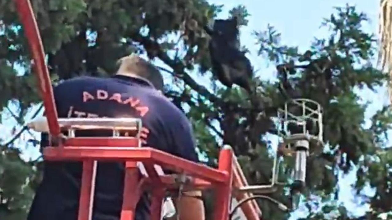 İhbar üzerine olay yerine gelen Adana Büyükşehir Belediyesi İtfaiye ekipleri, merdivenli araç yardımıyla kargaya ulaştı. Ekipler, titiz bir çalışma sonucu kargayı asılı kaldığı ipten kurtardı.