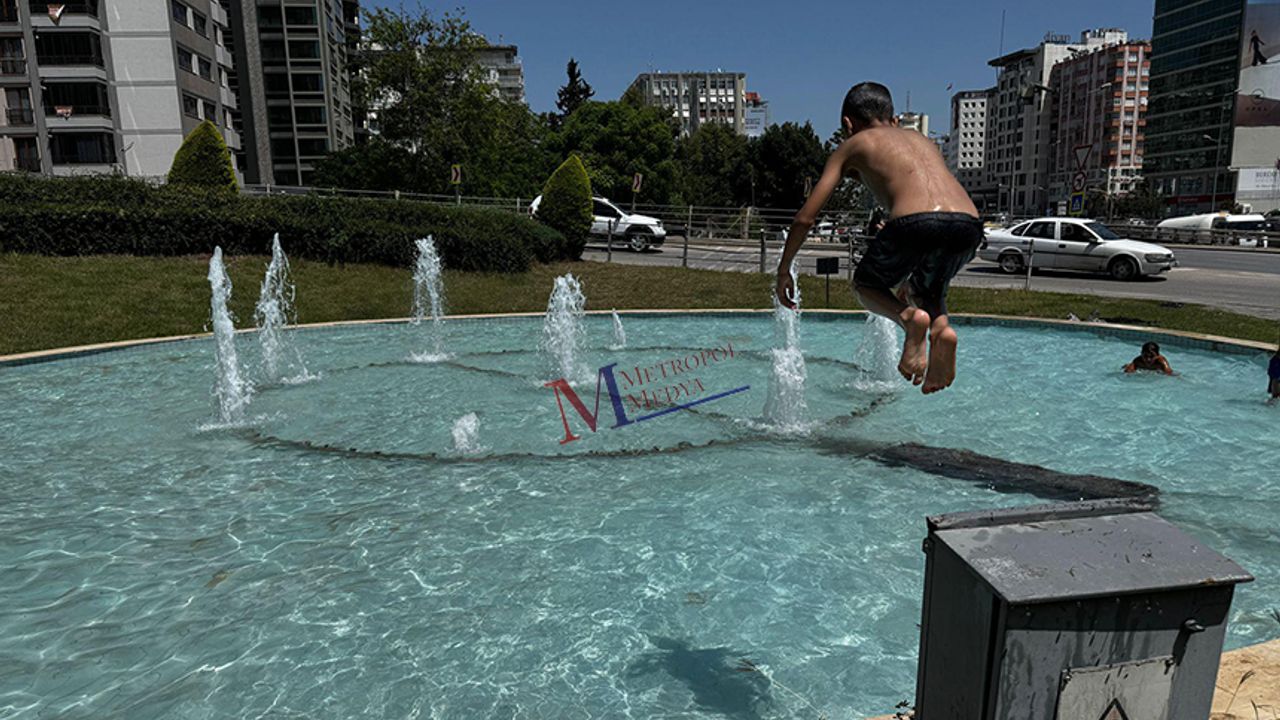 Çınarlı Mahallesi Turhan Cemal Beriker Bulvarı üzerinde bulunan süs havuzları, çocukların serinleme noktası haline geldi.