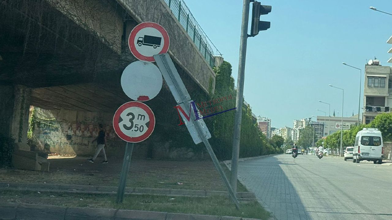 Levhanın bir süredir bu şekilde durduğu ve onarılmadığı görülürken bu durumun kent merkezindeki trafik levhalarının düzenli olarak kontrol edilmesi gerektiğini ortaya koyuyor.