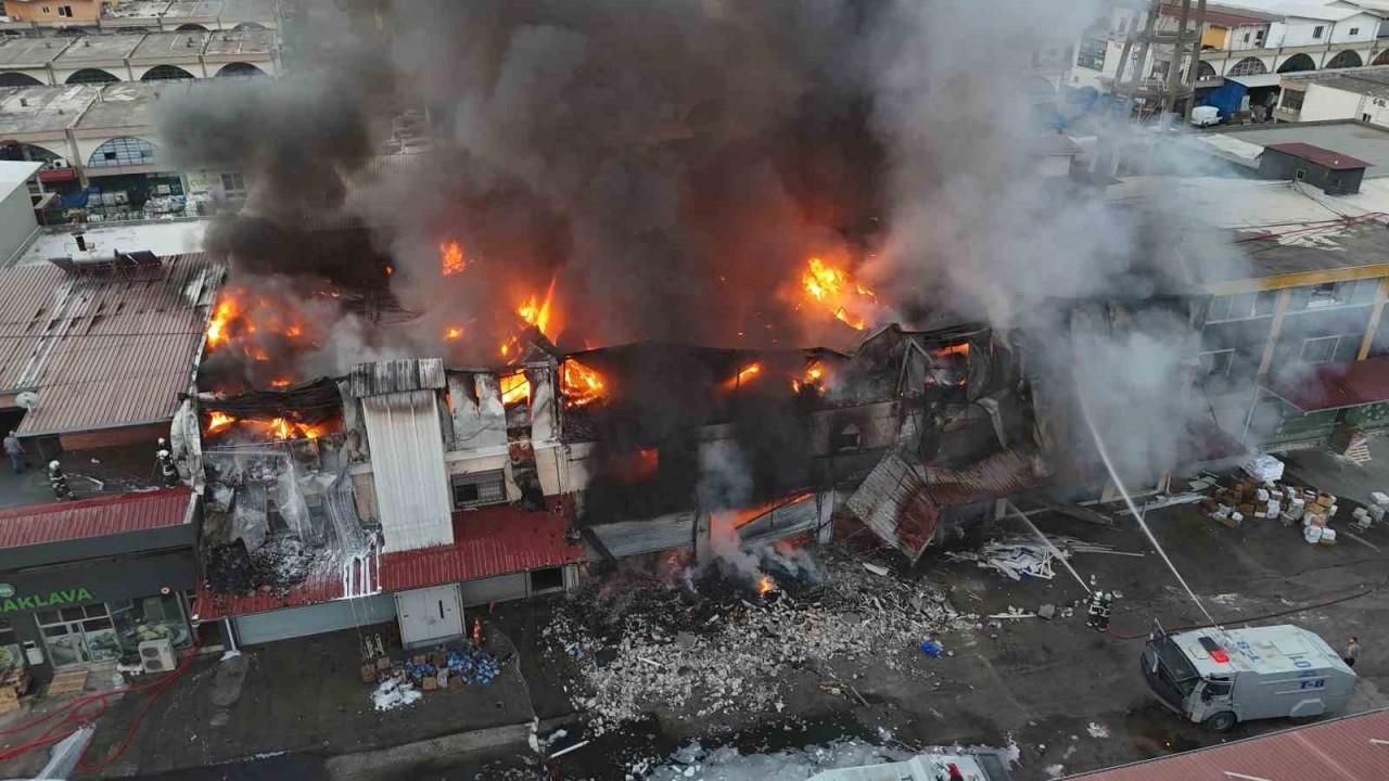 Söndürme çalışmalarına Toplumsal Olaylara Müdahale Aracı (TOMA) da destek verdi. Alevlerin bitişikteki iş yerlerine sıçradığı yangında ekiplerin müdahalesi sürerken, yangın dronla havadan kaydedildi.
