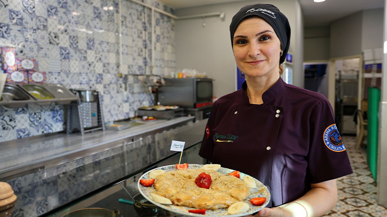 "İçerisinde şeker yok. Tahin ve bal olduğu için tadı biraz daha hafif kalıyor. Tepside yaptığımız için çıtır oluyor. Bu yüzden daha çok tercih ediliyor. Biz de ona göre siparişleri hazırlayıp müşterimize hizmette bulunuyoruz. Satışların güzel olması eşimin de hoşuna gitti. Kendisine tattırdığım ürünü menüye koyduğum ve satışlarımız da güzel gittiği için mutlu oldu."