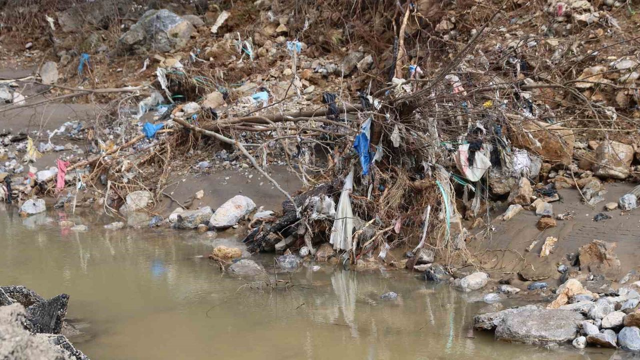 Suların taşıdığı atıklar dere yataklarında ve ağaç dallarında birikerek dikkat çekici görüntüler oluşturdu.