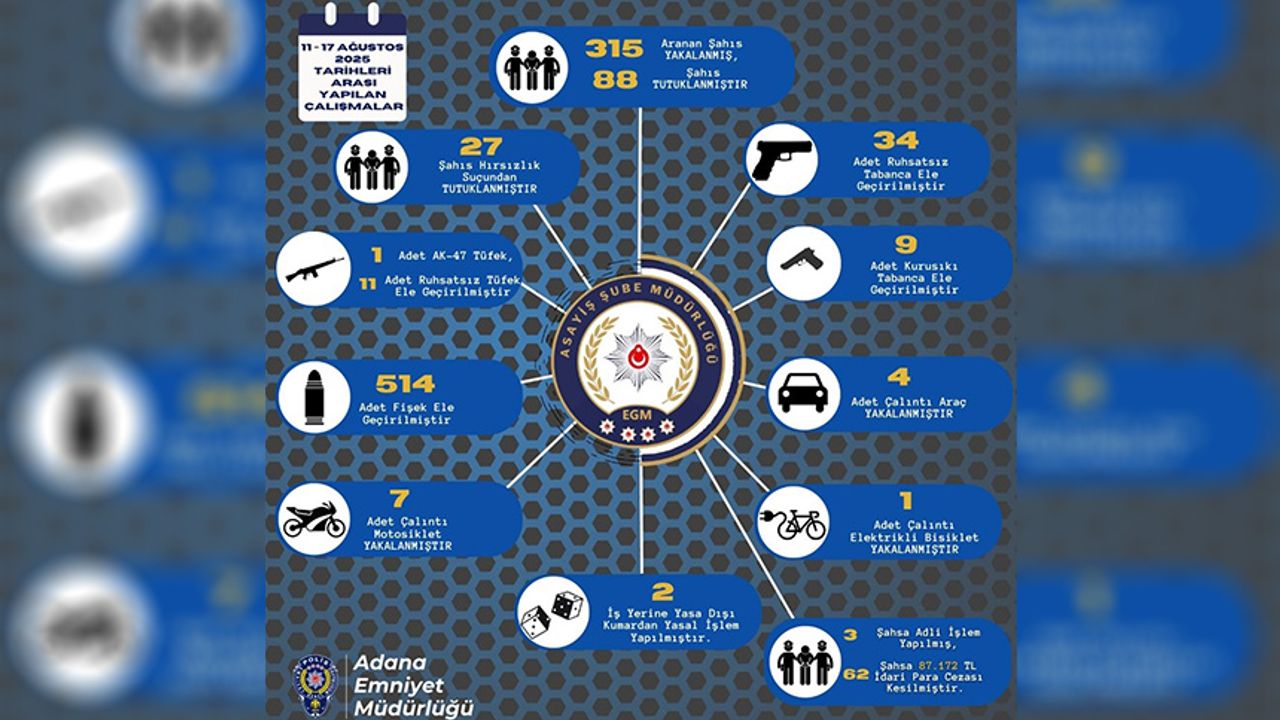 Adana İl Emniyet Müdürlüğü, vatandaşların huzur ve güvenliğini sağlamak adına denetim ve operasyonların aralıksız devam edeceğini vurguladı.