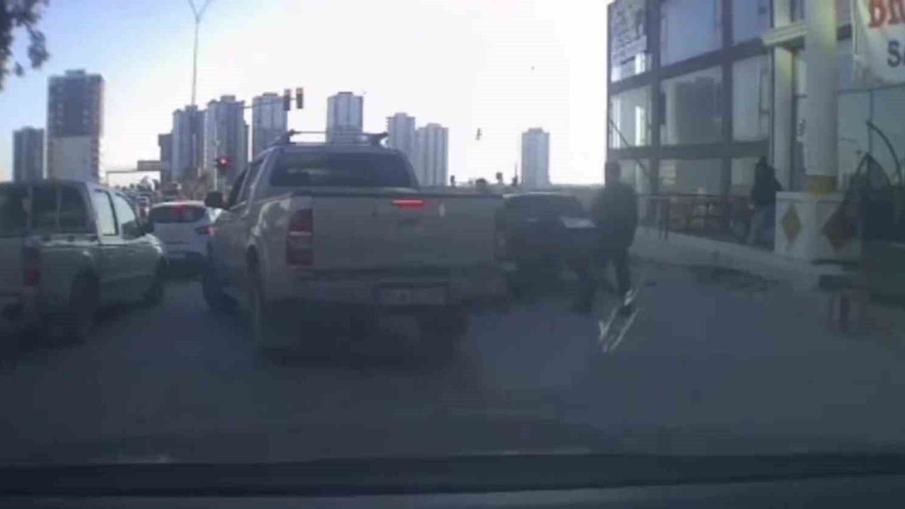 Olayın tüm detayları, trafikteki başka bir aracın güvenlik kamerasına yansıdı. Görüntülerde yaşanan şiddet anları net şekilde görülüyor.
