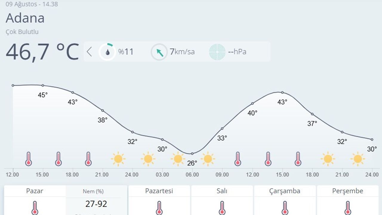 Meteoroloji Genel Müdürlüğü verilerine göre, 9 Ağustos 2025 tarihinde Adana’da hava sıcaklığı 46,7 dereceye ulaşarak yeni bir rekora imza attı. Bu değer, 13 Ağustos 2023’te ölçülen 45,7 derecelik rekorun üzerine çıktı. Uzmanlar, sıcak hava dalgasının etkisini önümüzdeki günlerde de sürdüreceğini belirtti.