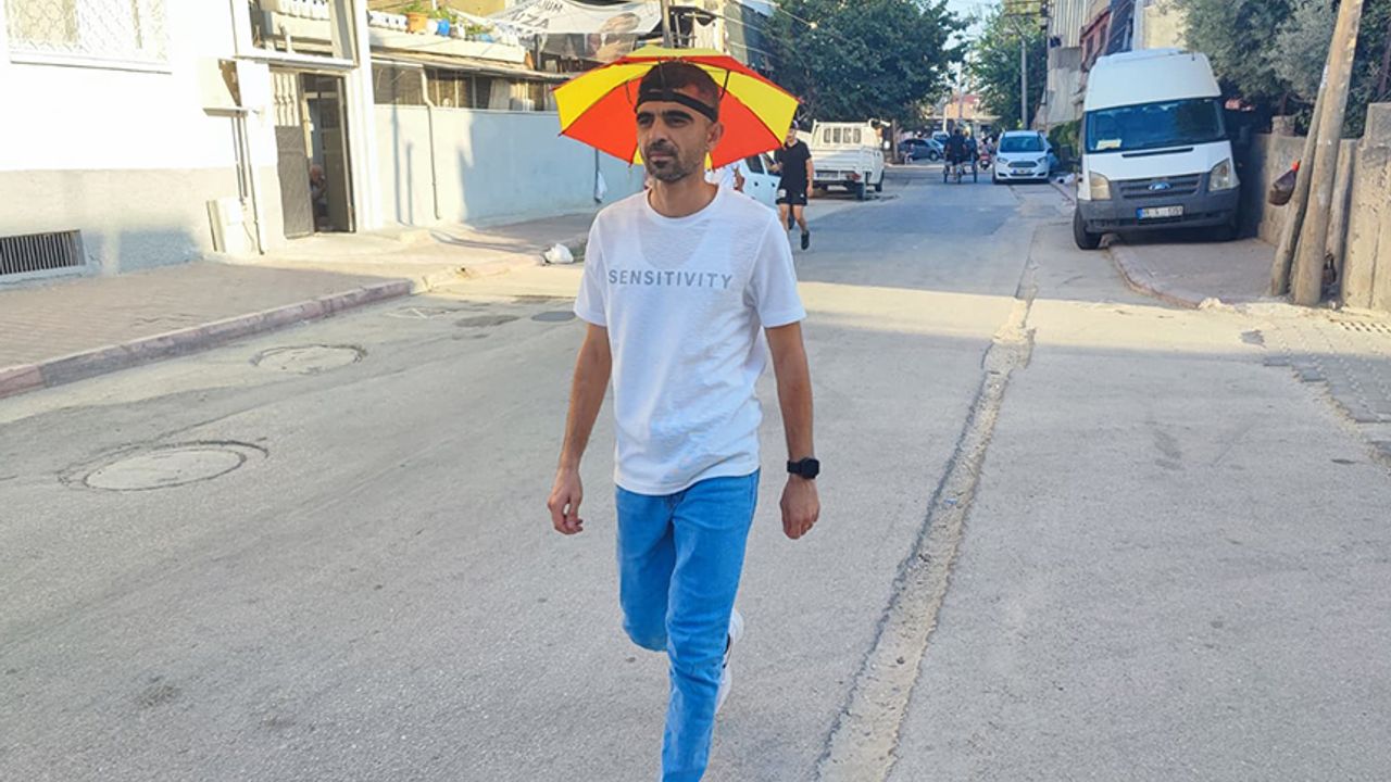 Gençlerden Mesut Akpınar, aşırı sıcaklar nedeniyle sokağa kafasına taktığı şemsiye ile çıktığını belirterek, “Hava çok sıcak bu nedenle bir esnaftan kafaya monte edilen şemsiye aldım. Artık sokağa bunsuz çıkmıyorum. Hava çok sıcak, yanıyoruz” dedi.