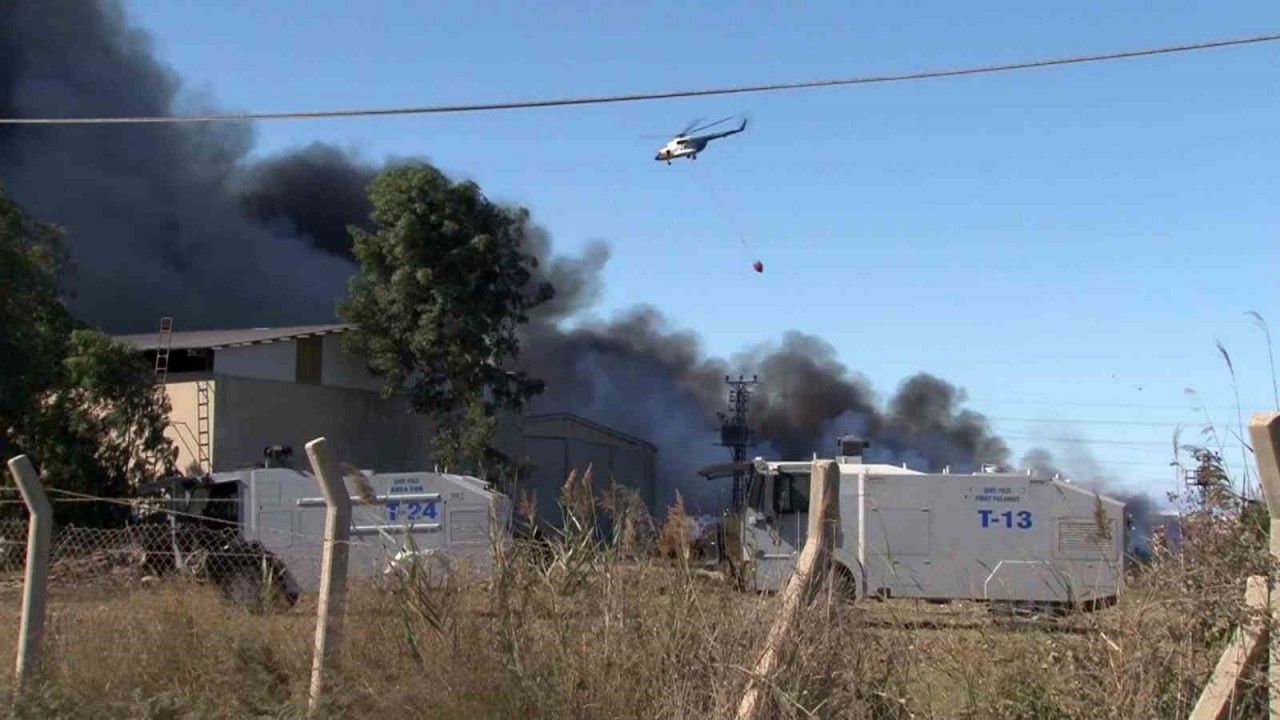 İtfaiye ekipleri, bahçedeki atık malzemelerin söndürülmesi için karadan müdahalede bulunurken, Orman Bölge Müdürlüğü’ne bağlı helikopterler de yangına havadan destek veriyor. Yangının fabrika binasına ulaşmasının önüne geçilirken, etraf güvenlik amacıyla çevrildi ve yangının başka alanlara yayılması engellendi.