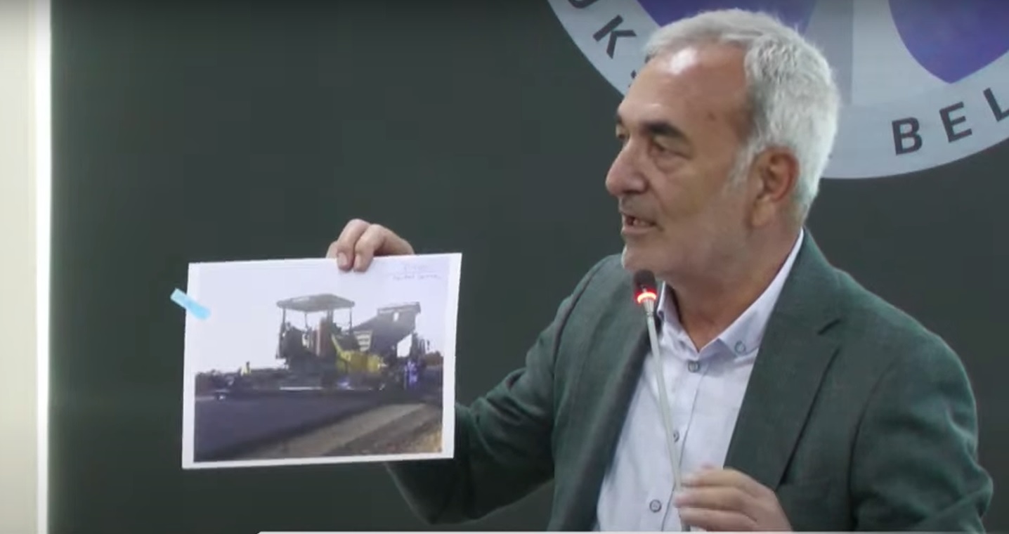Meclis üyelerine elinde tuttuğu dövizdeki asfalt serme makinesini gösteren Demirdağ şöyle konuştu: