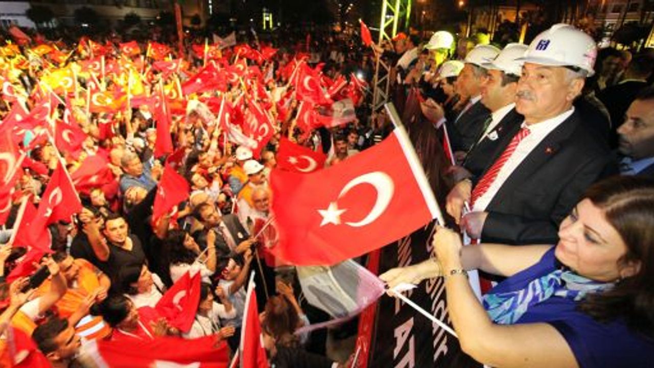 Saat 17:00'de Atatürk Parkı'nda toplanan binlerce kişi ellerinde meşaleler ve Türk bayrakları ile Uğur Mumcu Meydanı'na kadar yürüdü. Sloganlar ve alkışlarla süren yürüyüş renkli görüntülere sahne olurken Seyhan Belediye Başkanı Zeydan Karalar, Çukurova Belediye Başkanı Soner Çetin ve CHP Adana il Başkanı Orhan Sümer iş kazalarına dikkat çekebilmek için başlarına baret taktı.