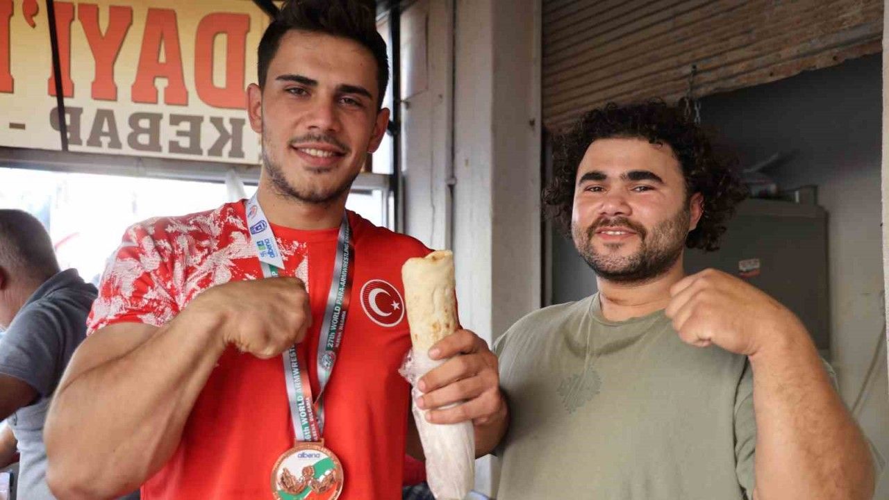 Olimpiyat Güreş Şampiyonu İsmet Atlı’nın memleketi Kozan, genç sporcularıyla adını uluslararası arenada duyurmaya devam ediyor. Denizcan Uçar, şampiyonadan döner dönmez kasap dükkanına geçerek etleri doğradı ve ardından antrenörü ile arkadaşlarıyla birlikte Adana kebabı hazırladı.