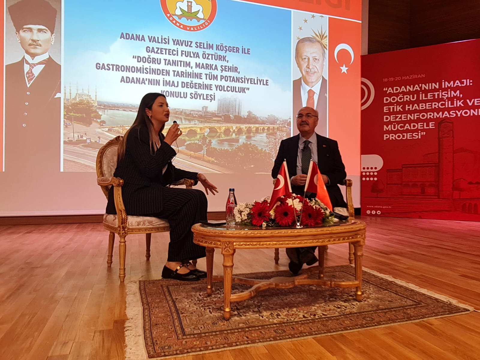 Söyleşide konuşan gazeteci Fulya Öztürk, Adana’da yaşanan gelişmeleri yakından takip ettiğini ifade ederek, “Adana’da olmaktan dolayı çok mutluyum. Bu şehirde bir süredir gözle görülür bir değişim yaşanıyor. Sayın Valimize teşekkür ediyorum, Adana’nın imajını dert edinip böyle kıymetli bir projeye imza attınız. Adana’nın imajı beni de zaman zaman üzüyordu ama artık daha iyi bir yolda olduğumuzu görüyorum” dedi.