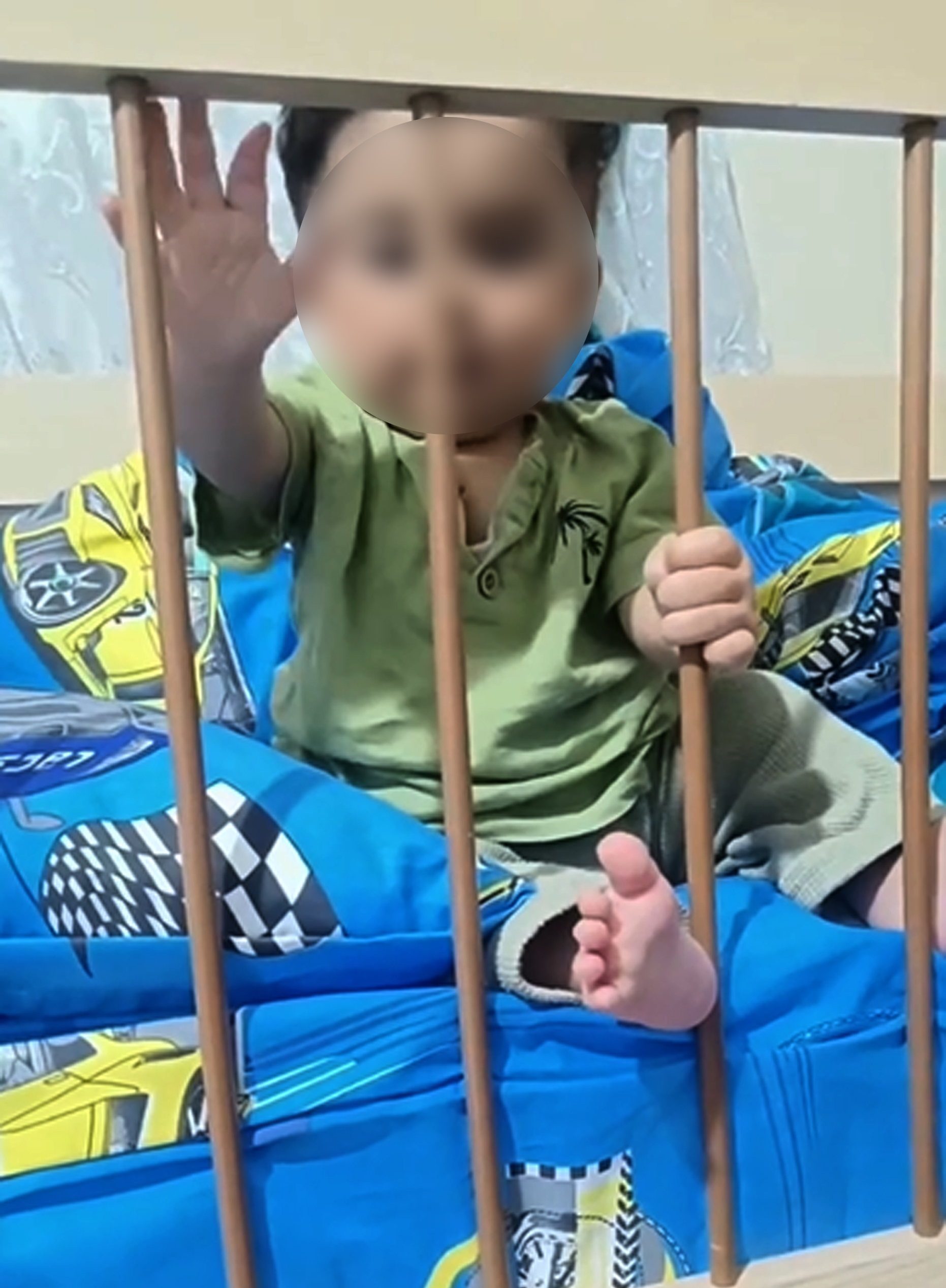 Aynı şahıs, bebeğini sanki demir parmaklıklar ardındaymış gibi beşinin korkuluklarının ardında gösterdi. Tüm bunları bir kurgu halinde montajlayan baba, videoyu da sosyal medyada paylaştı; tepkiler ardı ardına geldi. Polis, görüntüleri ihbar kabul edip, vicdansız babanın peşine düştü.
