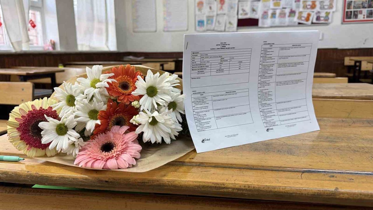 Karneleri çiçeklerle birlikte sıralarına bırakıldı