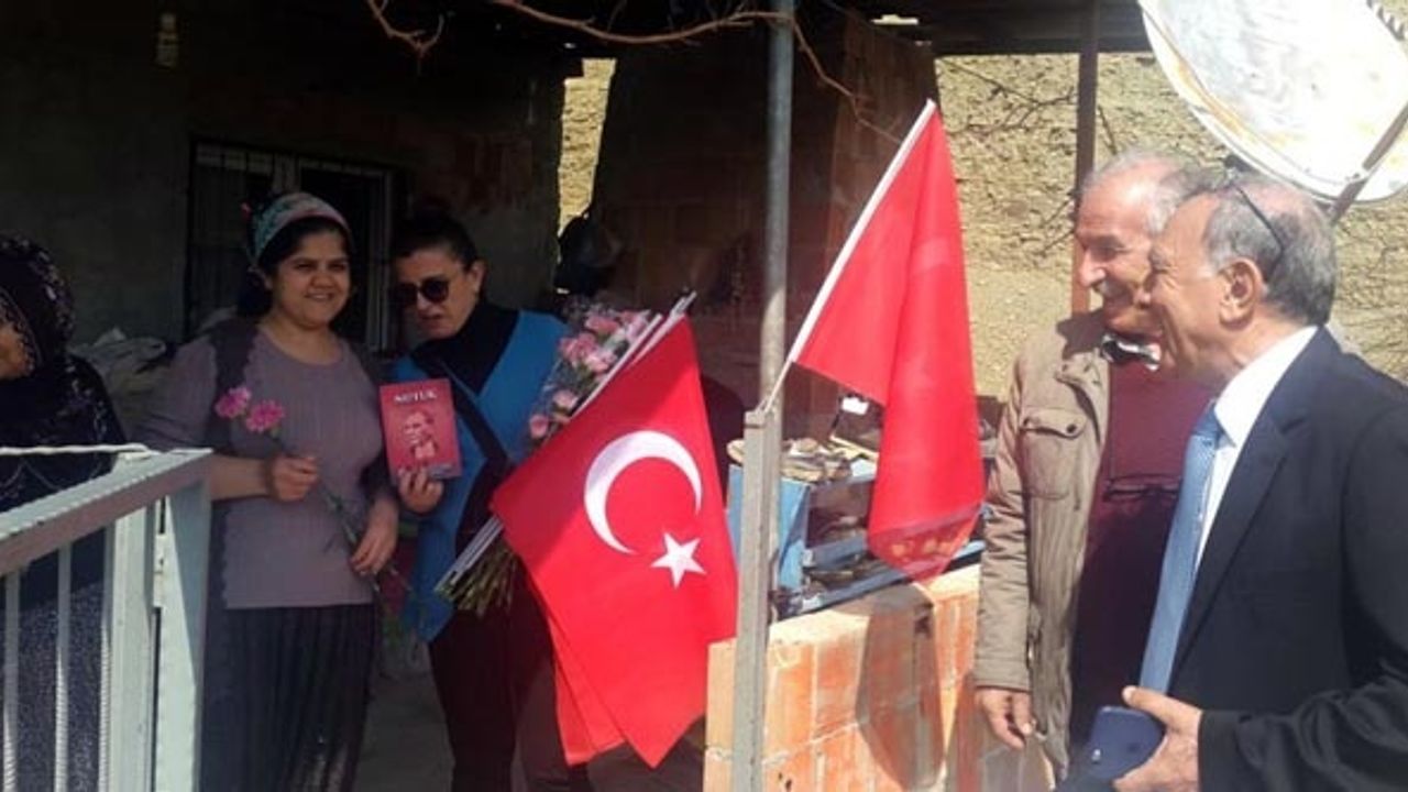 KADINLARA KARANFİL, TÜRK BAYRAĞI VE NUTUK, ÇOCUKLARA TİŞÖRT VE KİTAP DAĞITILDI