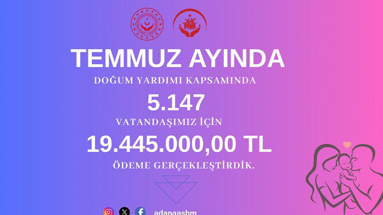 Parti tarafından yapılan açıklamada, “Doğum Yardımları” çerçevesinde yalnızca temmuz ayında Adana genelinde 5.147 aileye toplamda 19 milyon 445 bin TL ödeme yapıldığı belirtildi. Açıklamada ayrıca, "Adana’mızda her bir ailemizin yanında olmayı, onların mutluluğunu ve huzurunu büyütmeyi sürdüreceğiz. Çünkü güçlü aile, güçlü Türkiye demektir" ifadelerine yer verildi.