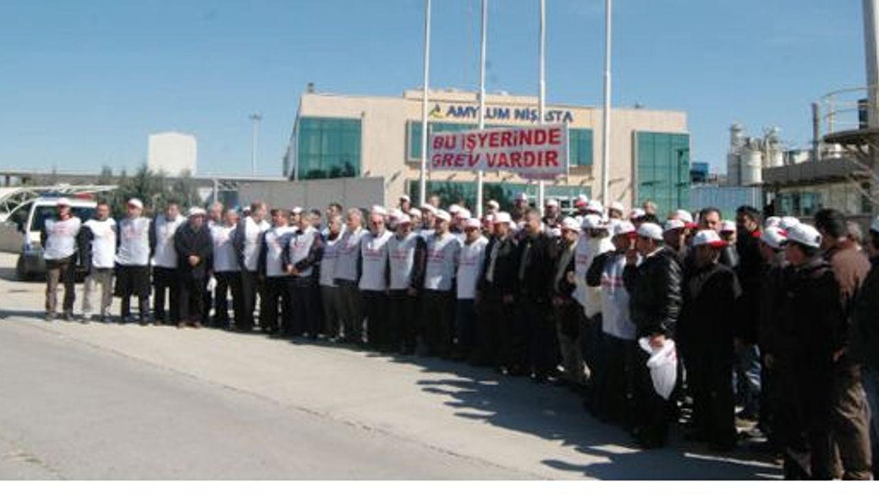 Tek Gıda İş Sendikası ile Amylum Nişasta arasında 70 işçiyi kapsayan ve 11 aydır devam eden Toplu İş Sözleşme (TİS) görüşmelerinde sonuç çıkmadı ve sendika dün itibari ile grev kararı aldı. Tek Gıda-İş Sendikası Genel Başkanı Mustafa Türkel, Türk-İş 4. Bölge Temsilcisi Edip Gülnar ve bağlı sendika başkanlarının katıldığı basın toplantısında, TİS görüşmelerinin sosyal hakların başında geldiğini söyledi. Türkel, "İşverene, tüm iyi niyetimizle sunduğumuz teklifimiz maalesef kabul görmedi. Amylum Nişasta
