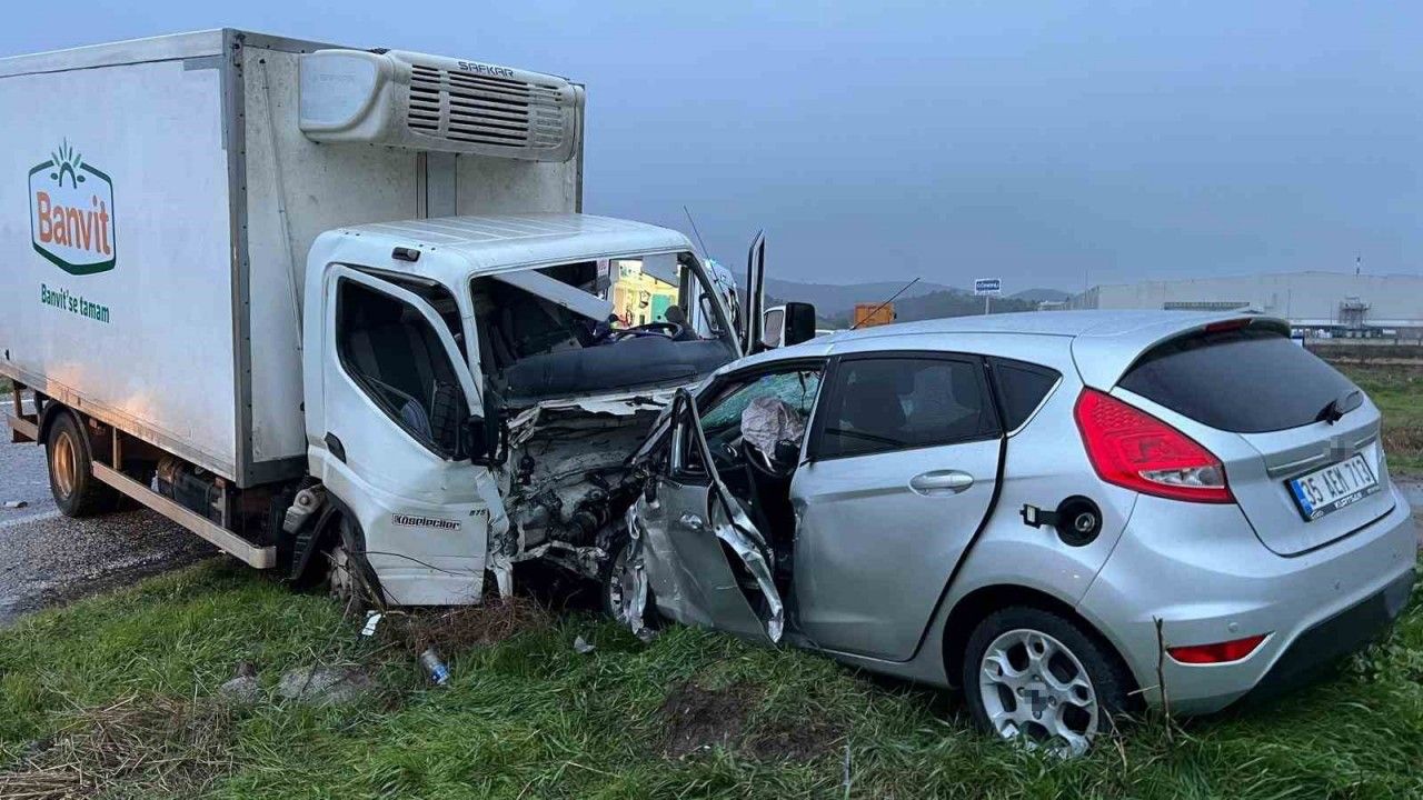 Edinilen bilgilere göre, Bandırma-Gönen Karayolu Taştepe kavşağı mevkiinde, H.Y. (34) idaresindeki 10 ALS 48 plakalı Banvit’e ait kamyonet, sürücüsünün direksiyon hakimiyetini kaybetmesi sonucu karşı şeritten gelen Y.Ş. (57) idaresindeki 34 AEM 713 plakalı otomobile önden çarptı.