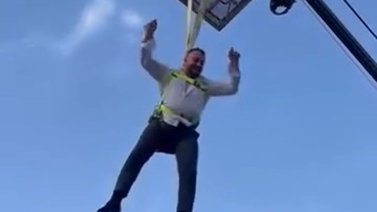Düğün evine girmeden önce damada yapılan şakalara bir yenisi eklendi. Damadın arkadaşları, Berhan Uysal’ı kiraladıkları vinç ile havaya kaldırarak iple sallandırdı. Bu sırada damadın altında arkadaşları çiftetelli oynadı ve zaman zaman damadın ayaklarından tutmaya çalıştı.