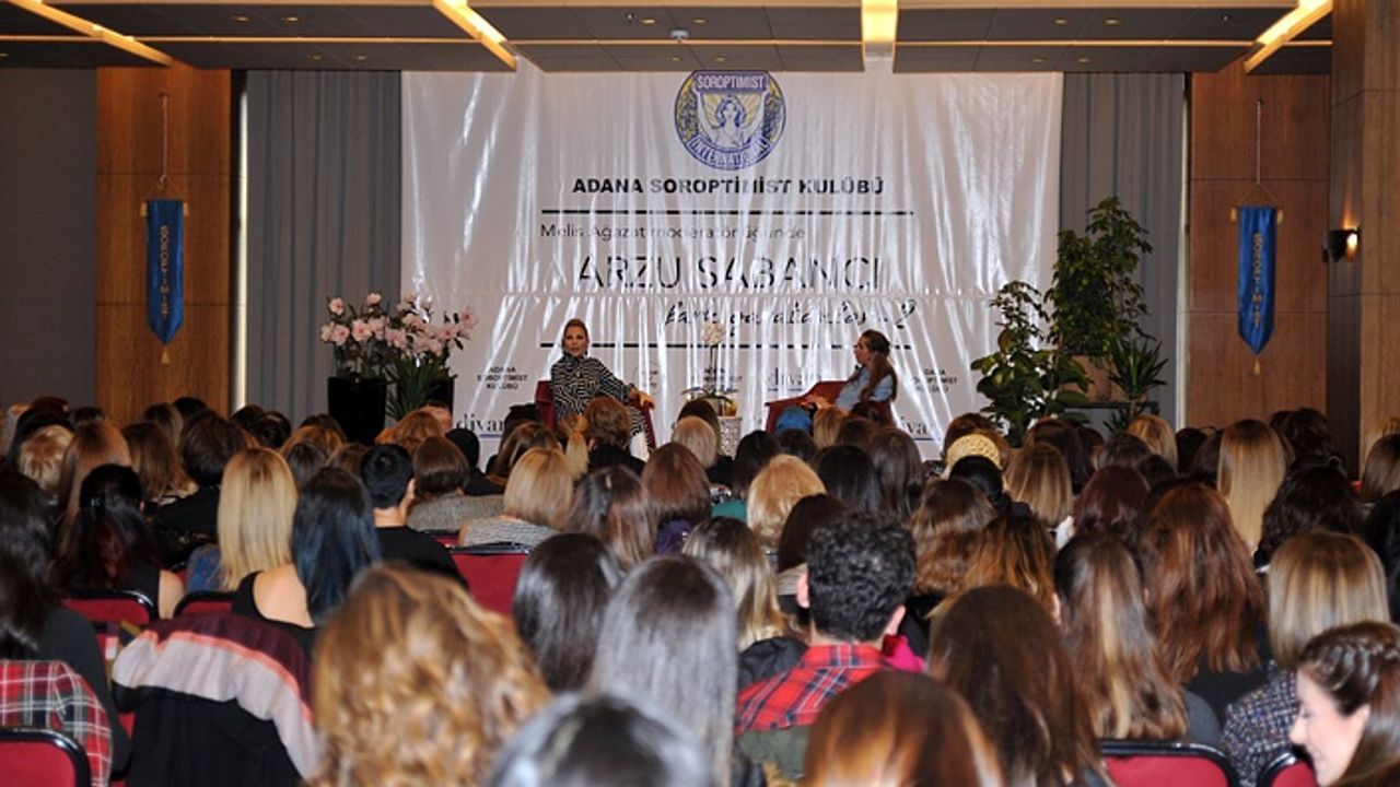 Soroptimistler kendisi ile aynı imkanlara sahip olmayan kadınların ve kız çocuklarının dolayısıyla toplumun daha iyi, medeni şartlarda yaşaması için projeler üreterek topluma katkı sağlar diyen Adana Soroptimist Kulübü Başkanı Demet Bilici şunları söyledi. “Adana'da 36 yıl önce kurulan Adana Soroptimist Kulübü kurulduğu günden bugüne kadar sayısız proje gerçekleştirerek çok sayıda insanın hayatında fark yaratmıştır. Bu fark kimi zaman meslek sahibi yaptığımız bir kadının gözlerindeki sevinçte kimi zaman da okuma yazma bilmezken çocuğunun karnesini artık okuyabilen bir annenin gururundadır. 2018-2020 dönemi yönetim kurulumuz bu dönem içerisinde burslarımız dışında bir köyü pilot köy olarak belirleyip bu köyün ihtiyaçları doğrultusunda çalışma kararı almış ve pilot köy olarak da Zeytinli köyü seçilmiştir. Köyün muhtarı ve okul müdürü ile yapılan görüşmelerde çok sayıda kadın ve kız çocuğunun okuma-yazma bilmediği öğrenilmiştir. Köyde okuma-yazma kursu açılması ve kütüphane yapılmasına karar verilmiş, gerekli izinler alınmıştır. Bu çalışmalar için gerekli olan finansman desteği yapacağımız projeler ile sağlanacaktır. Yılbaşı Panayırımız ile başladığımız etkinliklerimiz ‘Fark Yaratan Kadınlar’ başlığı altında Arzu Sabancı ile devam etti. Geliri ile ‘pilot köyümüzde yaşayan kadın ve kız çocuklarının hayatlarında fark yaratacağımız bir etkinliğe destek verdiğiniz için teşekkür ediyorum” dedi.