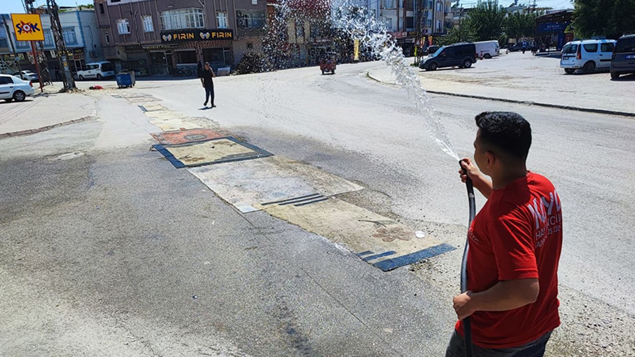 Altyapı kazılarının üzerinden aylar geçmesine rağmen asfaltlama yapılmayınca, tozdan hem kendileri hem müşterileri rahatsız olan mahalle esnafı, evlerinden getirdikleri halıları bozuk yola serdi. Ancak bu yöntem de tozu engellemeyince, çözüm olarak halıları hortumla sulamaya başladılar.