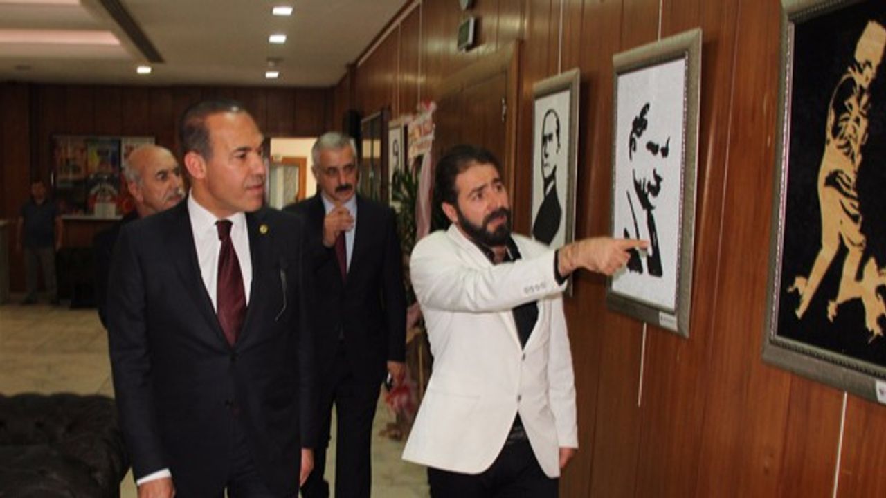23 adet, ahşap kıl testere kesimi, simli ve doğal vektörel çalışmanın yer aldığı sergiyi, 29 Ekim Cumhuriyet Bayramı’nın ruhuna çok uygun bulduğunu ve beğendiğini söyleyen Başkan Hüseyin Sözlü, Yunus Yuva’yı çalışmalarından dolayı kutladı.