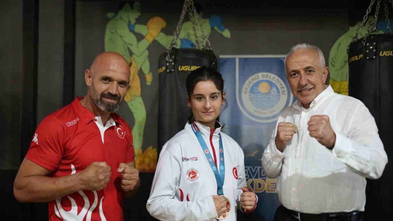 Başkan Mustafa Gültak da Akdeniz Belediyesi olarak kadınlara ve gençlere yönelik birçok alanda faaliyet yaptıklarının altını çizerek, "Akdeniz’i spor merkezi haline getirdik. Hem kadınlarımıza hem gençlerimize yönelik kültürel sosyal ve sportif alanlarda ciddi yatırımlar yaptık, yapmaya da devam ediyoruz. Bunların meyvesini almaya başladık. İşte onlardan bir tanesi, Hilal yanımızda. Hocamla birlikte babasını zorla ikna ettiğimiz günleri hatırlıyorum. 16 yaşında ilk kez bu arenaya çıktı. Babası sıcak bakmıyordu ama sağ olsun bizleri kırmadı. Hilal kızımız o günden bugüne kadar hızla kendini Türkiye’de ve dünyada göstermeye başladı. En son 3 bin sporcunun katıldığı, 30’un üzerinde ülkenin katıldığı şampiyonada da Türkiye’yi, Akdeniz Belediyesi’ni temsil ederek şampiyon oldu. Altın madalyasını bize getirdi. Amacımız Akdeniz’in kadınlarının, kızlarının gençlerinin sporda ve kültürel, sanatsal alanda ön plana çıkması. Tek tek hedeflerimize ulaşıyoruz. Hilal’e yapmış olduğu çalışmalardan ve başarılardan dolayı çok teşekkür ediyorum" dedi.