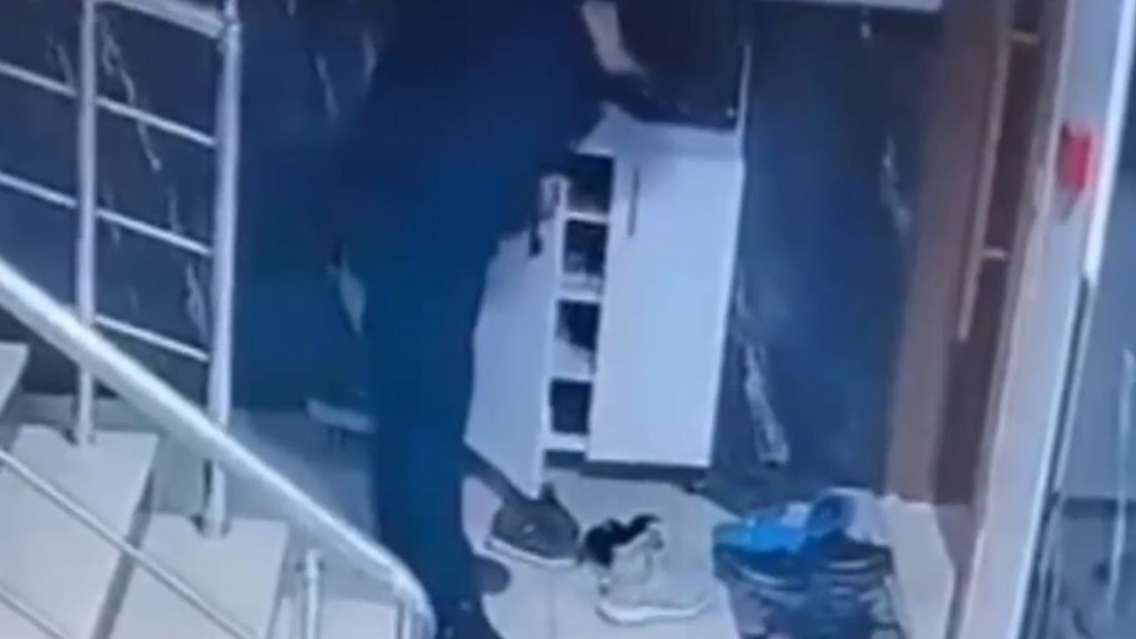 Görüntülerde, şahsın gözüne kestirdiği bir çifti alarak ceketinin içine sakladığı, bir süre sonra da elindeki poşetle apartmandan ayrıldığı anlar yer aldı.