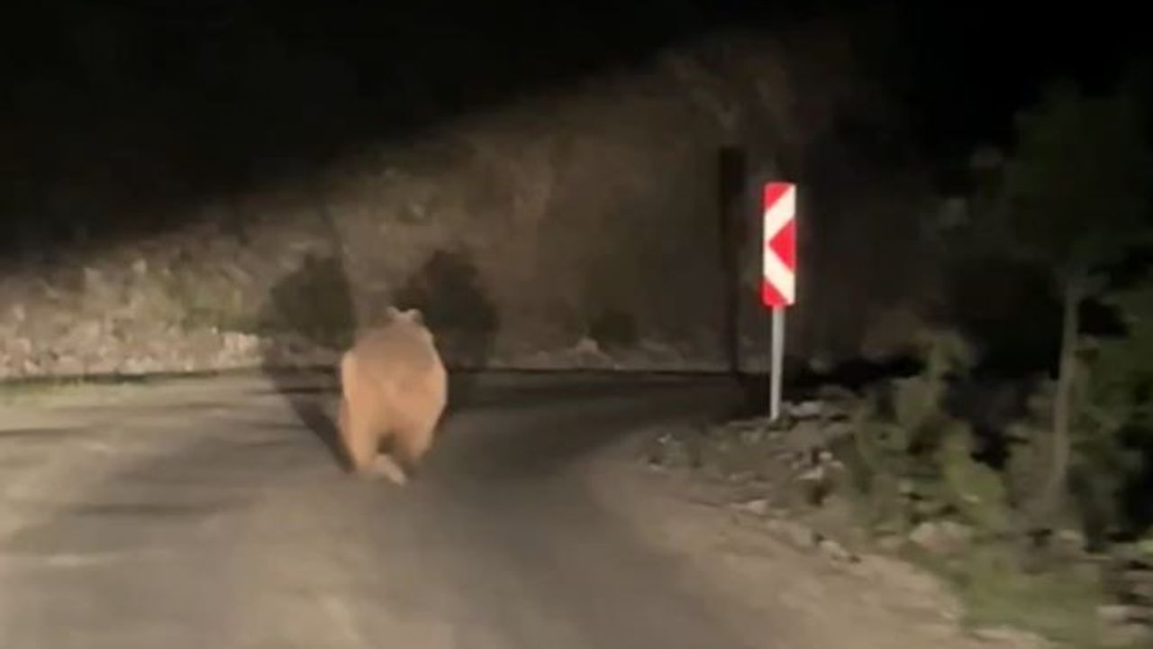 Ayının kaçış anları, o sırada araçta bulunan vatandaşlar tarafından cep telefonlarıyla saniye saniye kaydedildi. Görüntülerde, ayının paniği ve hızla koşarak ormana doğru yönelmesi dikkat çekti.