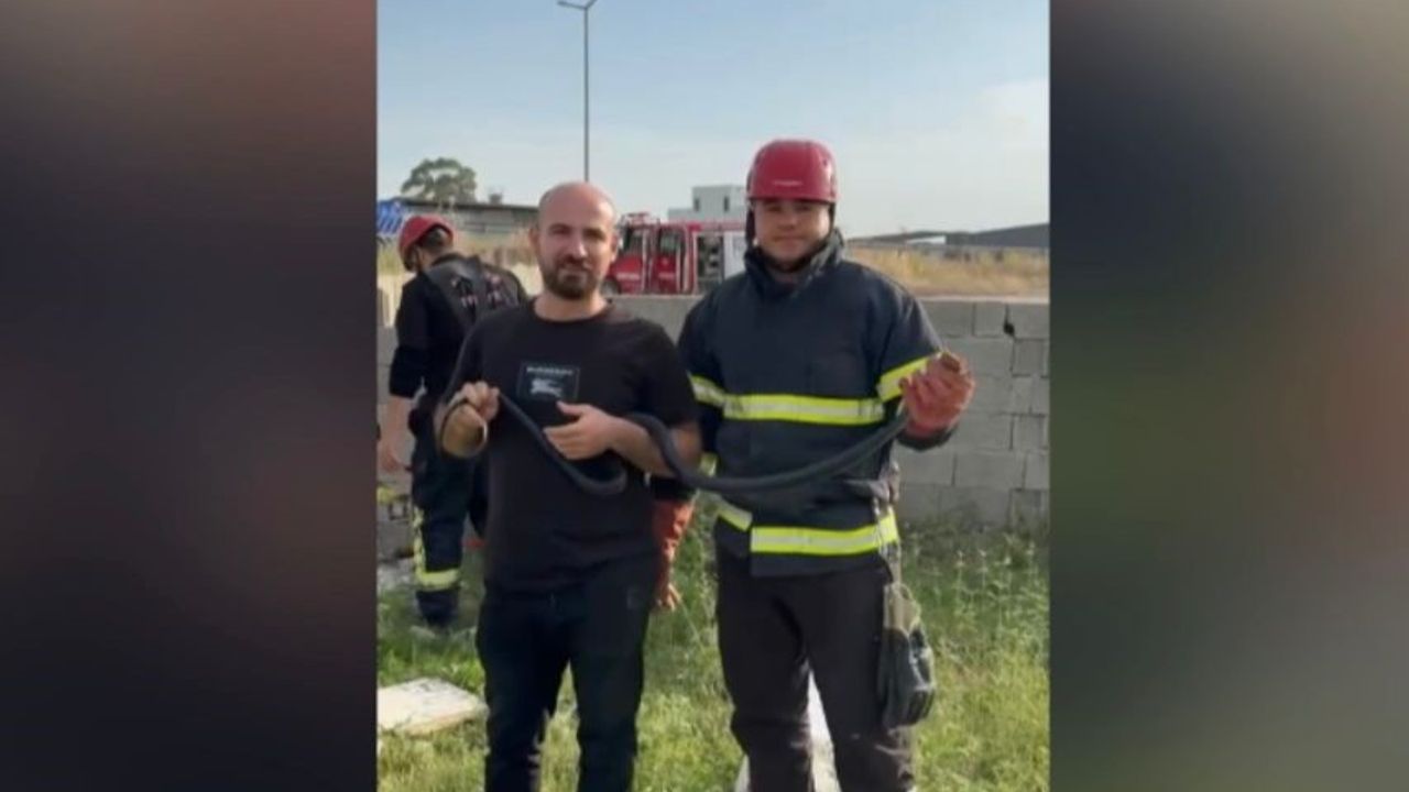 Yaklaşık 1.5 metre uzunluğundaki kara yılanı, ekipler tarafından daha sonra doğal yaşam alanına bırakıldı.