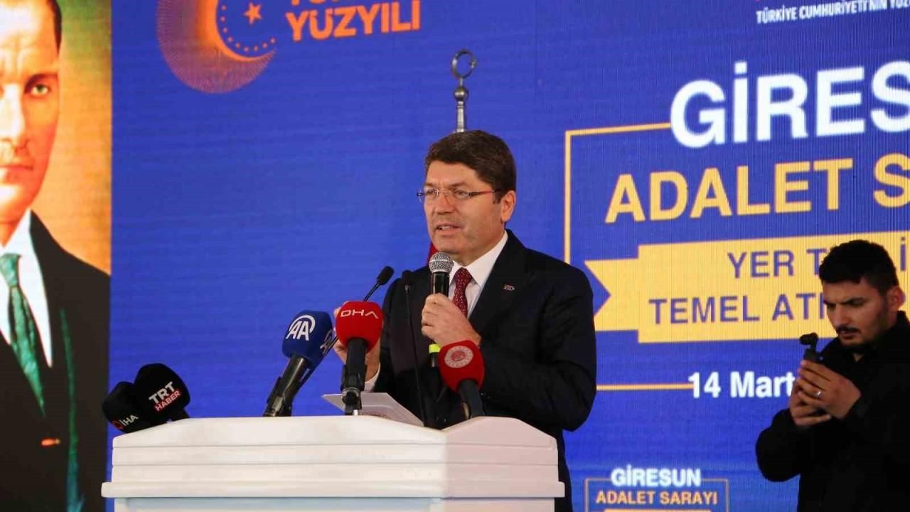 Giresun ziyareti kapsamında Giresun Valiliği, Giresun Adliye Sarayı, Giresun Belediyesi ile AK Parti ve MHP İl Başkanlıklarını ziyaret eden Adalet Bakanı Yılmaz Tunç, ardından Teyyaredüzü Mahallesi’nde eski E Tipi Cezaevi’nin bulunduğu alana yapılacak olan Giresun Adalet Sarayı’nın temel atma törenine katıldı. Törende konuşan Bakan Tunç, Türkiye’nin son 22 yılda almış olduğu mesafeye dikkat çekerek, “Adaletin tecellisi hukuk devletinde mümkündür. Hukuk devleti olabilmek için de tarafsız ve bağımsız yargı şarttır. Tabii tarafsız ve bağımsız yargının da adaleti tecelli edebilmesi için önemli unsurlara ihtiyacı vardır. Tabii bunlardan en başı insan kaynağı hakim, savcı ve avukat, etkin çalışan kaliteli meslek mensuplarımız ve yine o meslek mensuplarının çalışacağı fiziki mekanlar ve bu fiziki mekanların donanımı, teknolojik imkanlar ve tabii burada uygulanacak olan mevzuatın ihtiyaca cevap veren mevzuat kanunları olması. Bu noktada tabii üç noktayı ele aldığımız zaman özellikle fiziki mekanlar bakımından Türkiye’nin 22 yılda nereden nereye geldiği hepimizin malumu” ifadelerini kullandı.