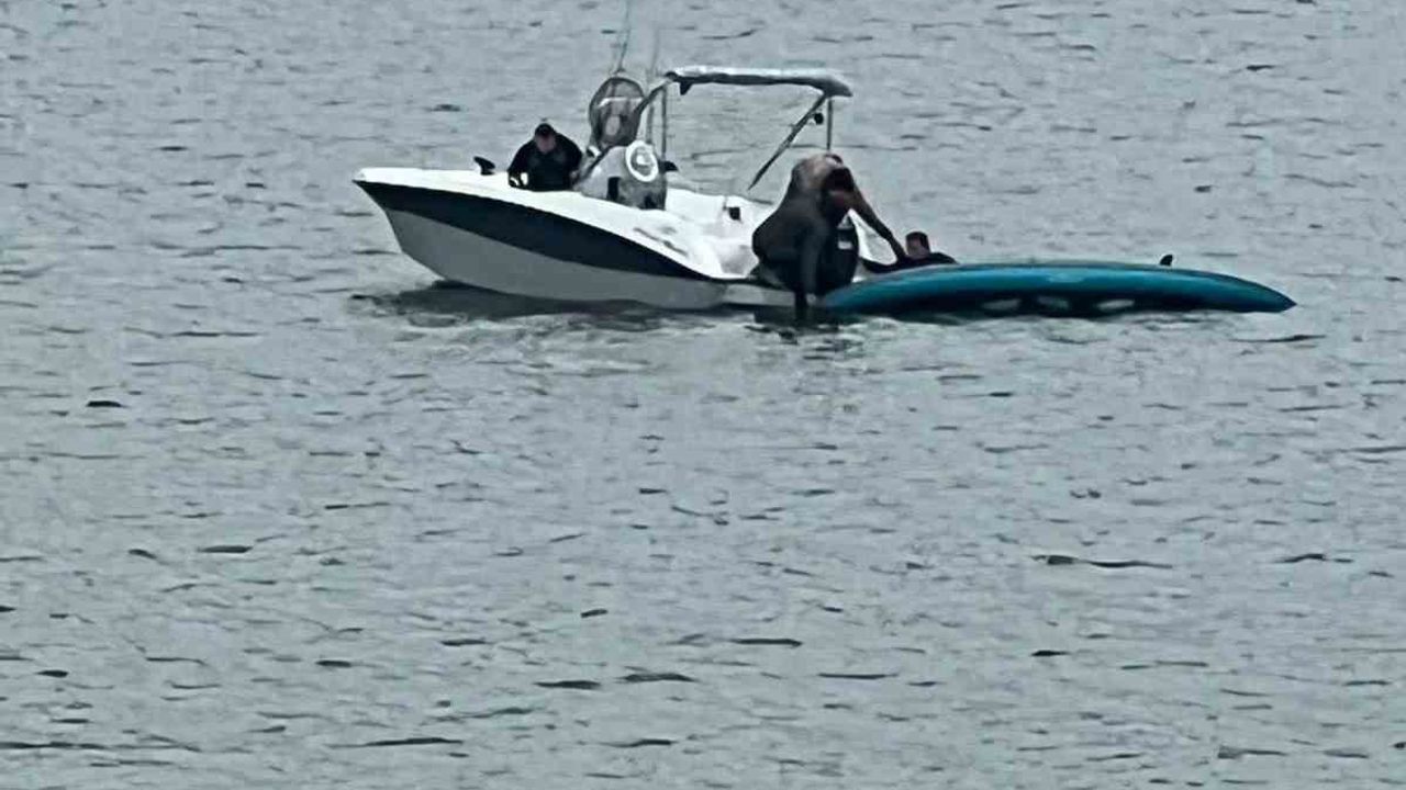 Olay, dün akşam saatlerinde Terkos Gölü’nde gerçekleşti. İddiaya göre, balık tutmak için göle kanoyla açılan 3 kişi dengelerini kaybedince kano devrildi. Devrilen kanodan suya düşen şahıslar yaklaşık 1 saat kurtarılmayı bekledi. Kıyıda bulunan bir vatandaşın sesleri duyması üzerine kıyıdan giden balıkçı teknesi suda bekleyen kişileri kurtardı. Şahısların kurtarılması ve kıyıya getirilmesi cep telefonu kamerasıyla kaydedildi. Olay yerinde ilk müdahalesi yapılan 3 kişi ambulanslarla hastaneye kaldırılırken, sağlık durumlarının ise iyi olduğu öğrenildi.