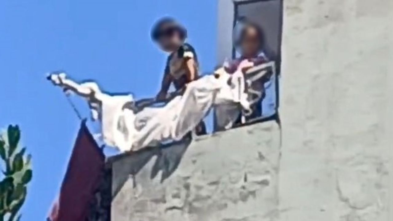 Demir korkuluklardan tehlikeli şekilde sarkan ve oynayan çocukların görüntüsü, çevrede bulunanların yüreğini ağza getirdi. Durumu fark eden bir vatandaş, çocuklara seslenerek uyarıda bulundu. Uyarının ardından çocuklar hızla balkondan içeri girdi.