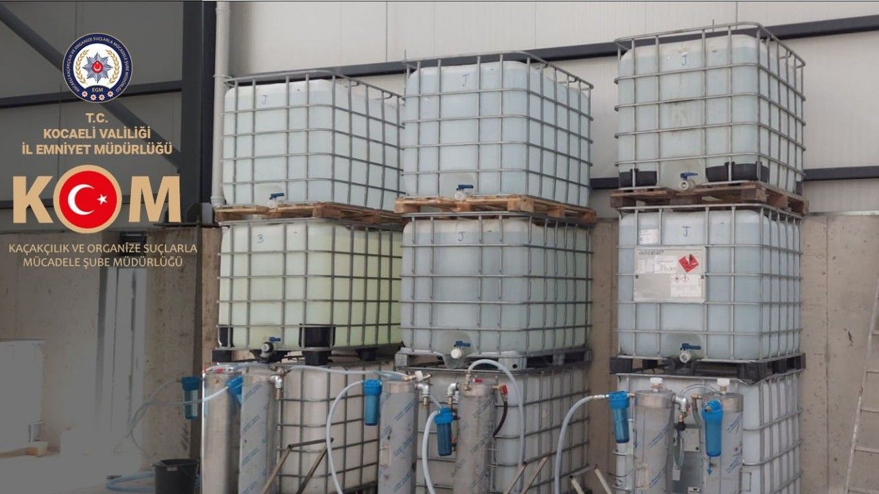 Kocaeli Emniyet Müdürlüğü Kaçakçılık ve Organize Suçlarla Mücadele Şube Müdürlüğü ekipleri Körfez ilçesinde kaçak alkol üretildiği bilgisi üzerine harekete geçti. Teknik ve fiziki takibin ardından imalathaneye operasyon düzenlendi. Yapılan aramalarda, 12 ton kaçak etil alkol, 6 ayrıştırıcı filtre ünitesi, 12 başlıklı doldurma ve paketleme ünitesi ele geçirildi. 9 şahıs hakkında 5607 S.K.M suçundan işlem yapılırken, 4 şahıs gözaltına alındı.