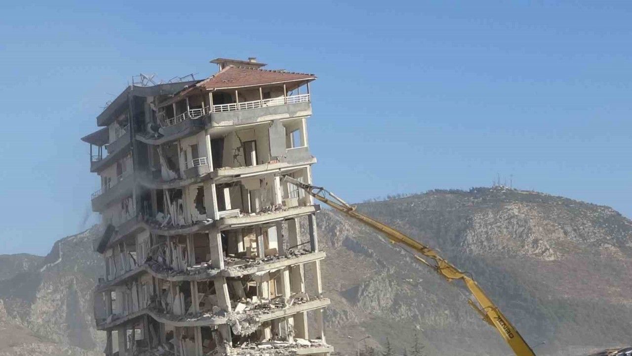 Kahramanmaraş merkezli depremlerin vurduğu Hatay’da enkaz kaldırma işlemleri aralıksız devam ediyor. Antakya ilçesi kent merkezinde enkaz kaldırma işleri neredeyse tamamlandı. Ağır hasarlı 8 katlı bir binaya önce iş makinasıyla zarar verildi ardından operatörün tek dokunuşuyla bina yerle bir oldu. Binanın yerle bir olma anı kameraya yansırken yıkım sorunsuz olarak gerçekleşti.