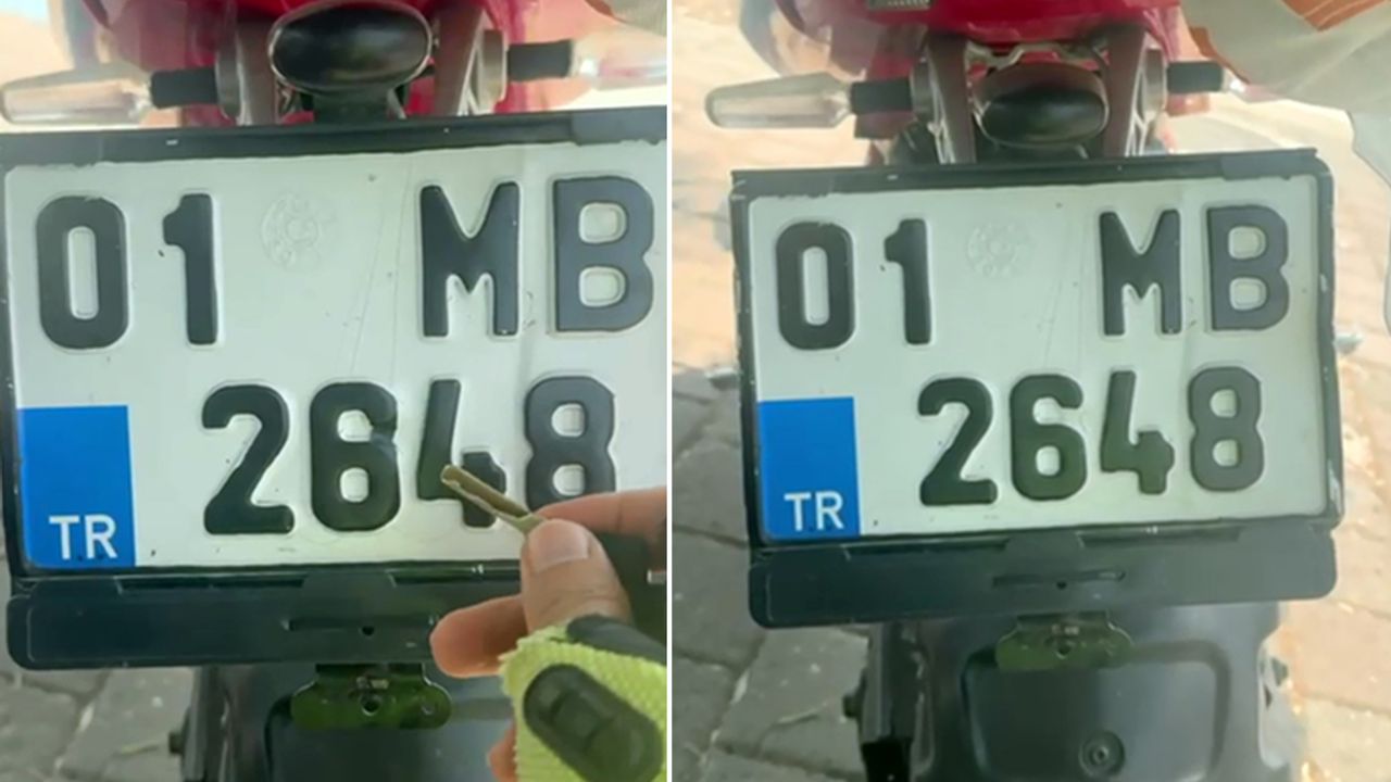 Polisin, durumundan şüphelenip durdurduğu bir sürücünün, ekiplere ibraz ettiği ruhsatla aracın üzerinde bulunan plaka arasındaki tutarsızlık dikkat çekti. Polis, plakayı dikkatli bir şekilde incelediğindeyse; 6 rakamının siyah bir bantla 8 olarak değiştirildiğini tespit etti. Sürücüye, ‘Karayolları Trafik Kanunu’ kapsamında tam 30 bin 15 lira idari para cezası uygulanırken, motosiklet de trafikten men edilerek, yediemin deposuna çekildi.