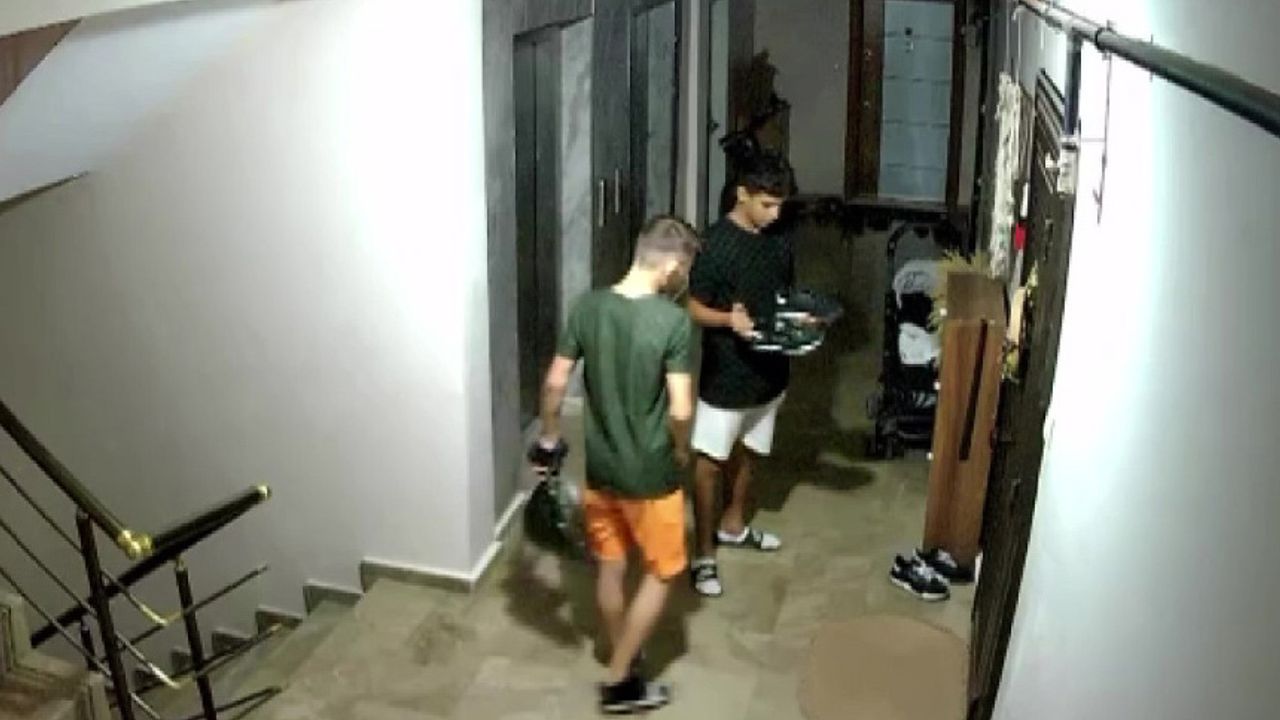 Kimliği henüz belirlenemeyen iki genç, girdikleri apartmanda kapı önündeki ayakkabıları önce dans ederek kutladı, sonra da alıp kaçtı. O anlar apartmanın güvenlik kamerası tarafından saniye saniye kaydedildi.