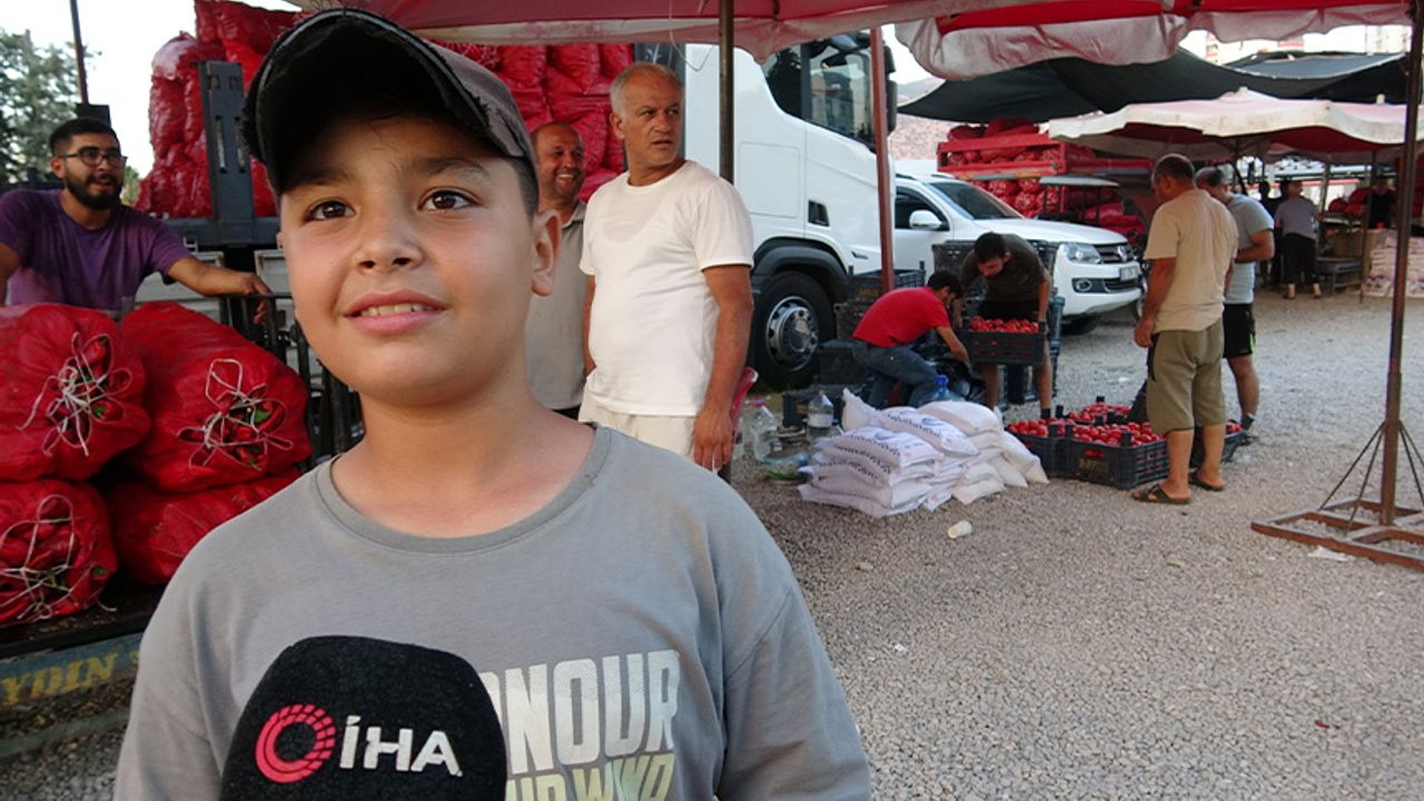 "Ben istediklerimi almak için biber pazarına gelip çalışıyorum. Biber çekim kartlarını dağıtıyorum. Forma almak istiyorum. Bu yıl ablamın düğünü olacak, onun için takım elbise almak istiyorum. Galatasaray, Milan veya Real Madrid formalarından birini almak istiyorum, bir de krampon. Bu yıl 6’ncı sınıfa geçtim. Anneme çalışmak istediğimi söyledim, akrabalarımız da burada olduğu için izin verdi. Geçen yıl günlük 300 TL kazanıyordum, bu yıl inşallah 500 TL olur."