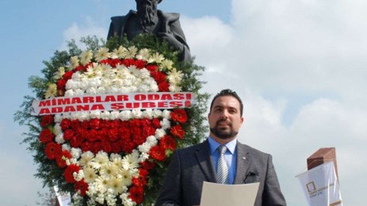 Törende konuşan Mimarlar Odası Adana Şube Genel Sekreteri Kamuran Pekçetin,”Mimar Sinan’ın Ölümünün 423. Yılında anmak üzere tekrar bir araya gelmiş bulunuyoruz. Elli yıla yakın süreyi kapsayan, Osmanlı Devleti’nde yaptığı mimarlık görevi boyunca, yarattığı eserler ve getirdiği yeniliklerle, Osmanlı - Türk mimarlığını zirveye taşımış, tüm dünyada bilinen Osmanlı mimarisi tarzının yaratıcısı olmuştur. Anadolu’da ve Avrupa’da birçok eserin yapımını gerçekleştiren Mimar Sinan, birçoğu İstanbul’da olan, 84 cami, 52 mescit, 57 medrese, 7 okul ve darülkurra, 22 türbe, 17 imaret ve 3 darüşşifa, 7 su yolu kemeri, 8 köprü, 20 kervansaray, 35 köşk ve saray, 6 ambar ve mahzen, 48 hamam ve kaydı olmayanlarla beraber, üç yüz elliyi aşkın yapının baş mimarlığını üstlenmiştir.