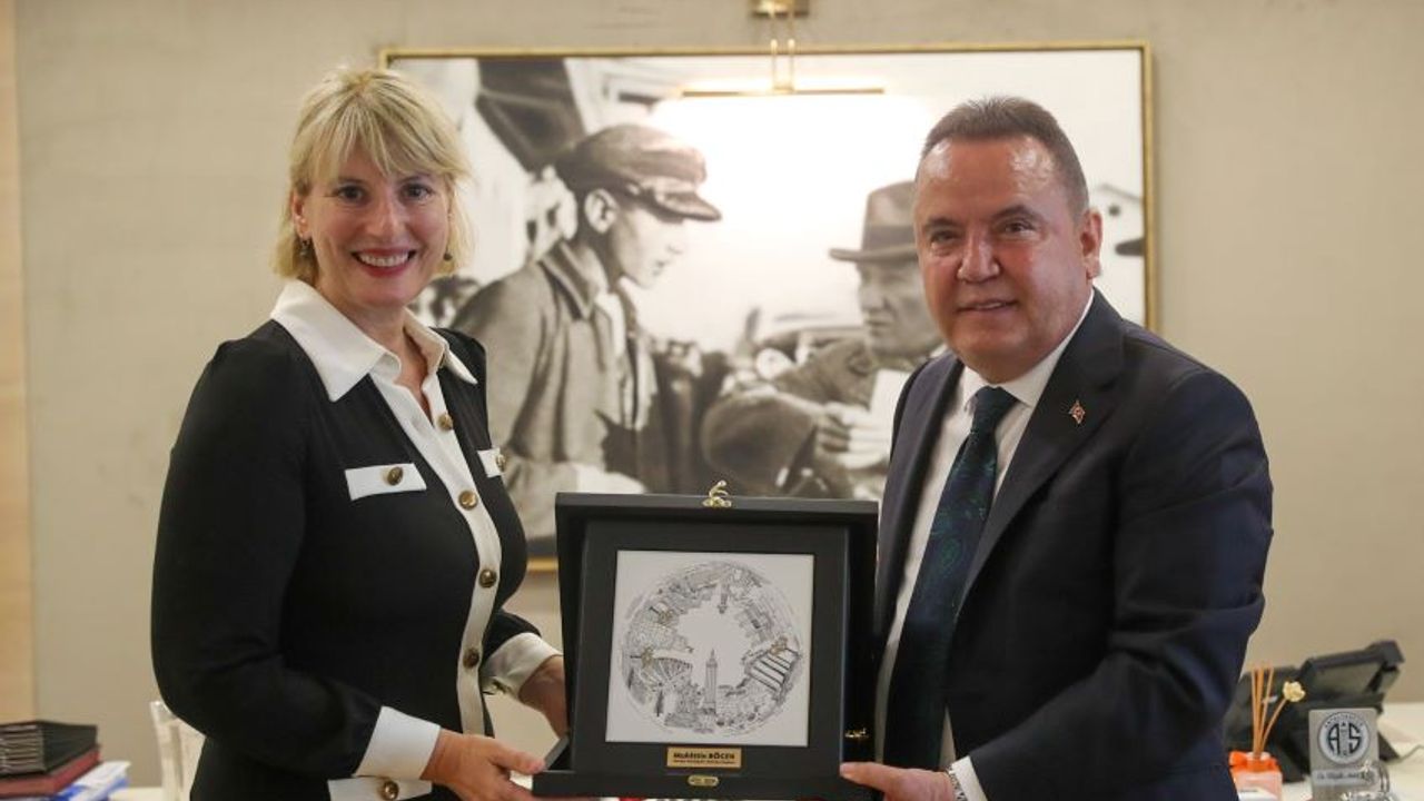 Antalya Büyükşehir Belediye Başkan Danışmanı Lokman Atasoy, Antalya Büyükşehir Belediyesi’nin çevre ile ilgili projelerini soran Büyükelçi Morris’e belediyenin bu alanda yaptığı çalışmalar hakkında bilgi verdi. Büyükelçi Morris’in ziyaretinde Antalya Büyükşehir Belediyesi Genel Sekreteri Cansel Tuncer, Genel Sekreter Yardımcısı Mustafa Gürbüz ile Başkan Danışmanları Osman Ayık ve Lokman Atasoy da hazır bulundu.