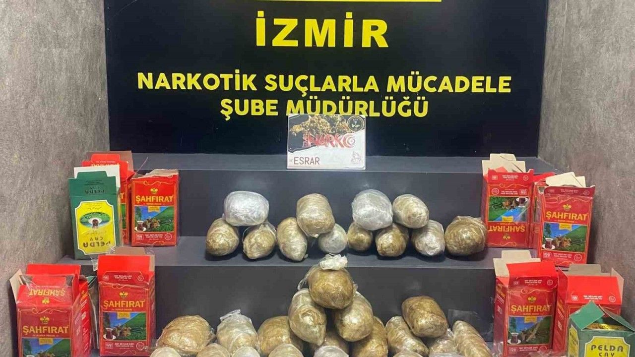 Öte yandan, Bornova ilçesinde bulunan bir kargo firmasından, kargo paketiyle uyuşturucu sevkiyatı yapılacağı bilgisi edinen Narkotik ekipleri, adreste operasyon gerçekleştirdi. Operasyonda, çay kutularının içerisine gizlenmiş halde, 14 kilo 150 gram skank esrar maddesi olduğu görüldü. Uyuşturucu maddelere el konulurken, olayla ilgili 2 şüpheli gözaltına alındı.