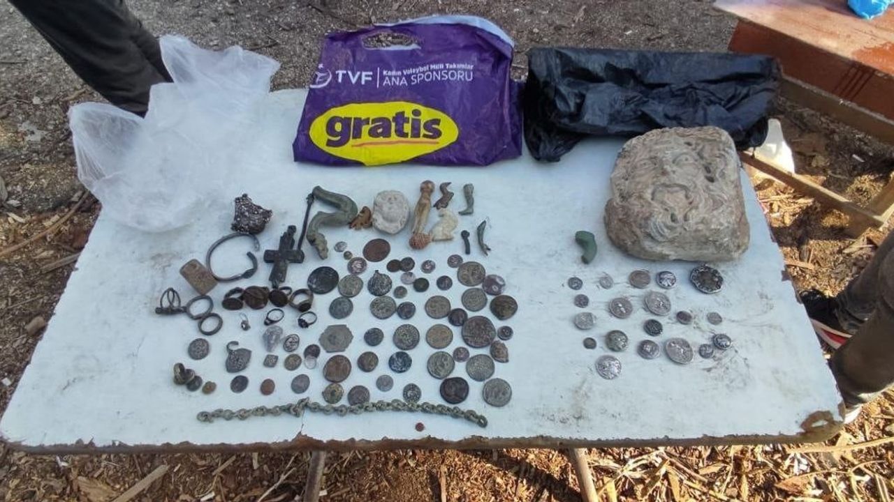 18 şüpheli gözaltına alınırken, yapılan aramalarda tarihi eser niteliği taşıdığı değerlendirilen 104 sikke ve 1 obje, 900 paket kaçak sigara ve 265 kilogram kıyılmış tütün ele geçirildi.