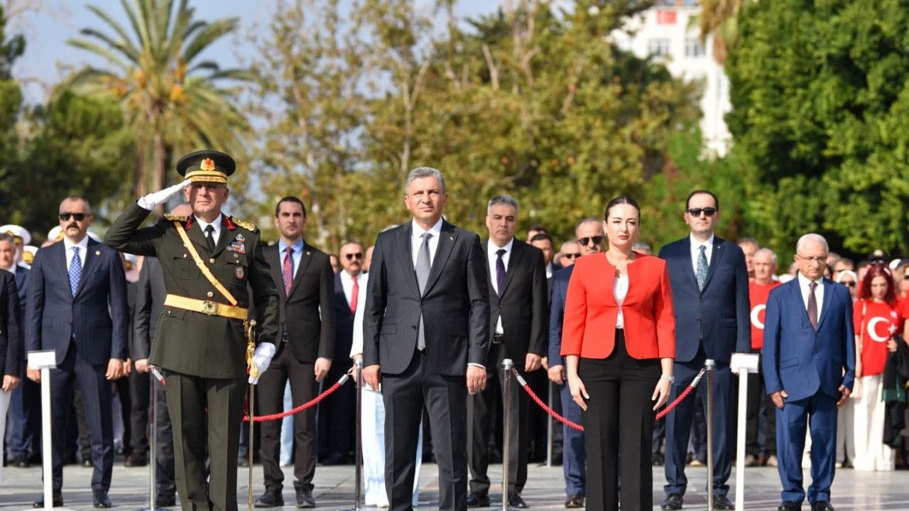 Törene Antalyalıların yanı sıra şehirde tatil yapan turistler de yoğun ilgi gösterdi. Cumhuriyet Meydanı’nda gerçekleştirilen tören, çelenk sunumuyla başladı. 30 Ağustos Antalya Garnizon Komutanı Tümgeneral Alparslan Kılıç, Antalya Valisi Hulusi Şahin ve Büyükşehir Belediye Başkan Vekili Büşra Dirgen Özdemir, Atatürk Anıtı’na çelenk sundu. Törene siyasi parti milletvekilleri, kamu kurum ve kuruluş temsilcileri, askeri erkan, öğrenciler ve çok sayıda vatandaş katıldı.