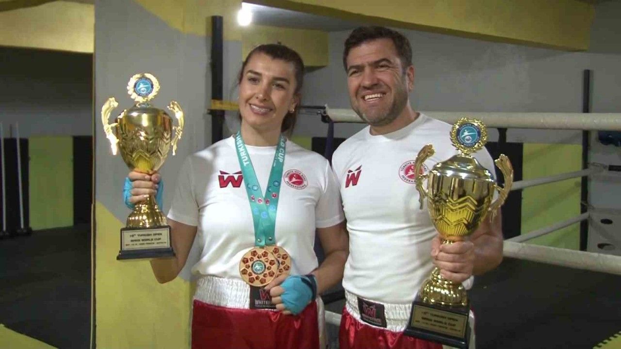 Taştan çifti, azim ve kararlılıklarıyla örnek olarak kick boksta başarıdan başarıya koşmaya devam ediyor.