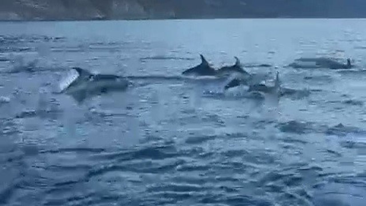 Şarköy’ün Gaziköy Mahallesi açıklarında denize açılan vatandaşların teknesine yanaşan yunuslar, bir süre tekneyle birlikte ilerledi. Zaman zaman suyun yüzeyine çıkarak adeta yarışan yunuslar, izleyenlere görsel bir şölen sundu. Sürü halinde denizde dolaşan yunusların oyunları, cep telefonu kameralarıyla ölümsüzleştirildi.