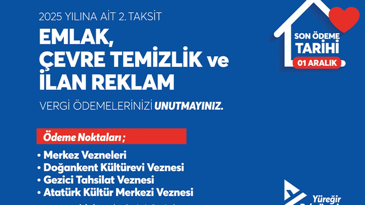 Belediyeden yapılan açıklamada, mükelleflerin yasal yükümlülüklerini yerine getirmeleri için son ödeme tarihinin 1 Aralık 2025 olduğu bildirildi.